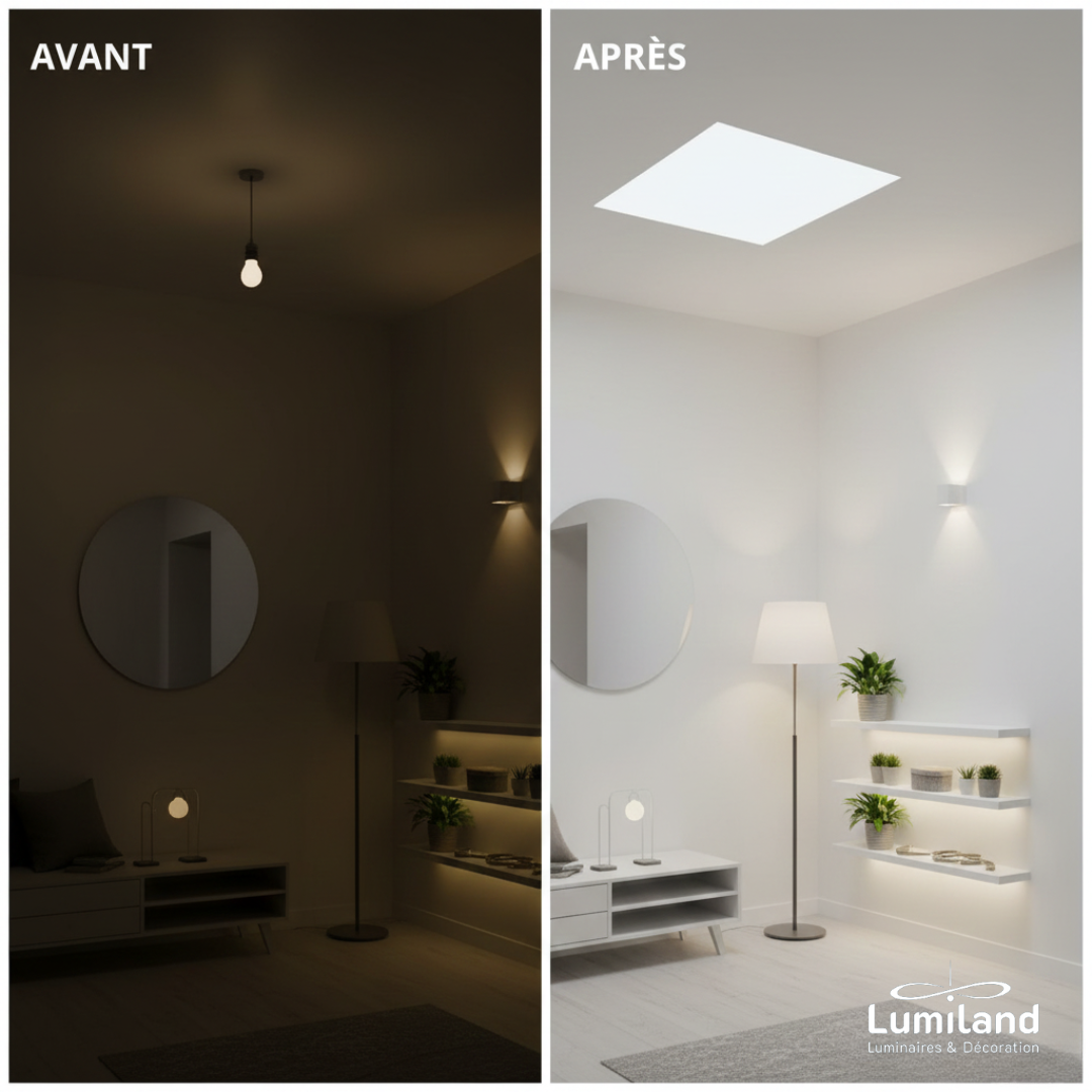 Notre conseil Lumiland : Visez 4000K (Blanc Neutre) pour simuler au mieux la lumière du jour dans vos pièces sombres.