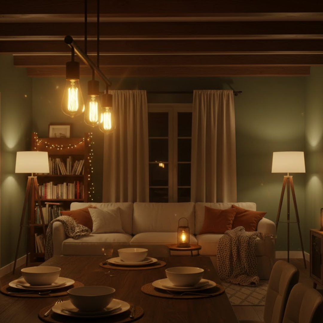 • La lumière chaude (2700K–3000K) est idéale pour les pièces de détente : salon, salle à manger, chambre.